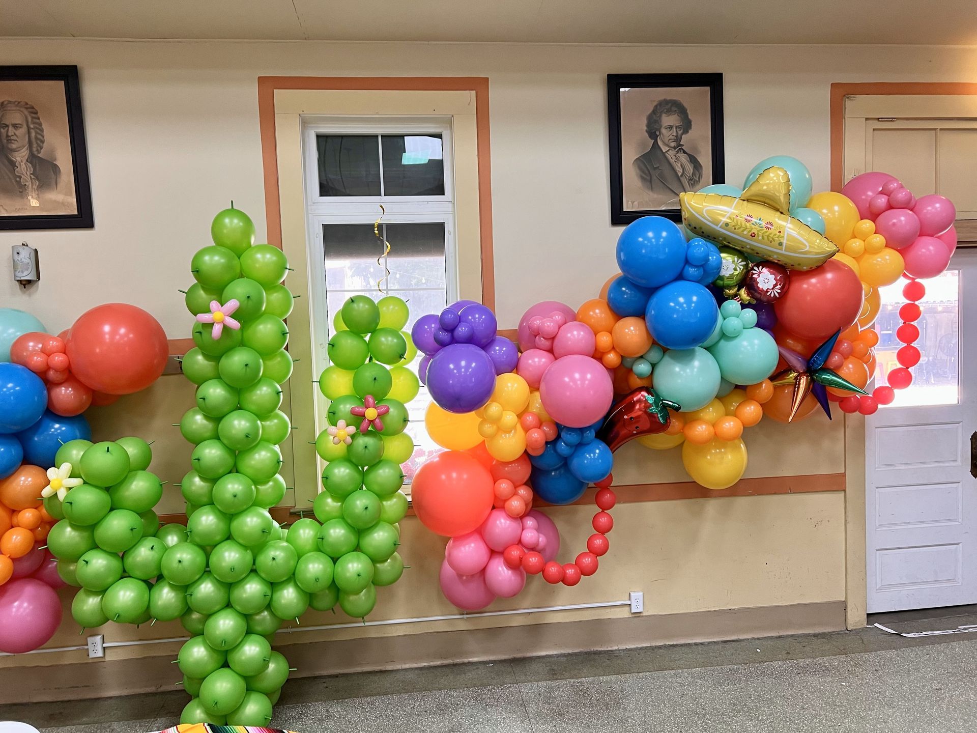 Balloon Garlands are my favorite! They are attached to your wall or structure, not free standing. They can be put onto almost any surface (wall, staircase, pole, roof, tree, etc.) and are fully customizable to YOUR event. I build the garland onsite, to make sure it fits the area and space provided! We will discuss how many nuggets you'll need for your space.